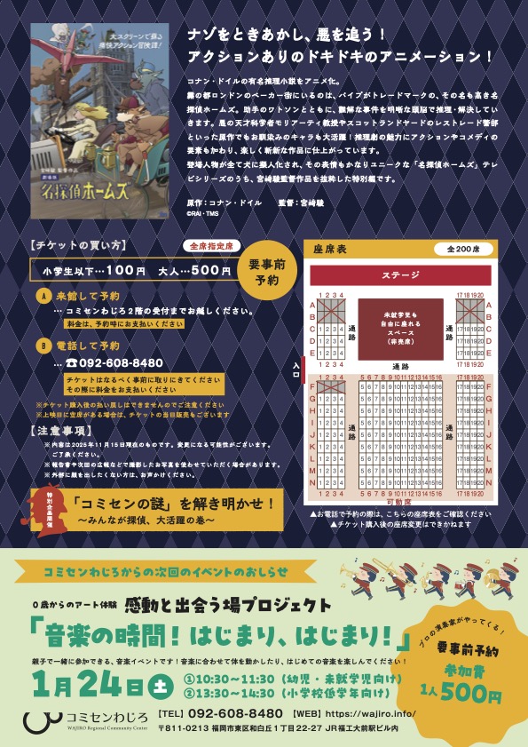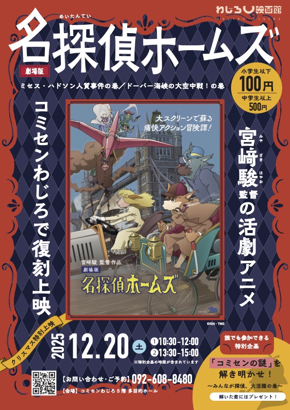 12月20日(土)に福岡市和白地域交流センターコミセンわじろにて行われる「わじろ映画館」で「探偵ホームズ」を上映します。