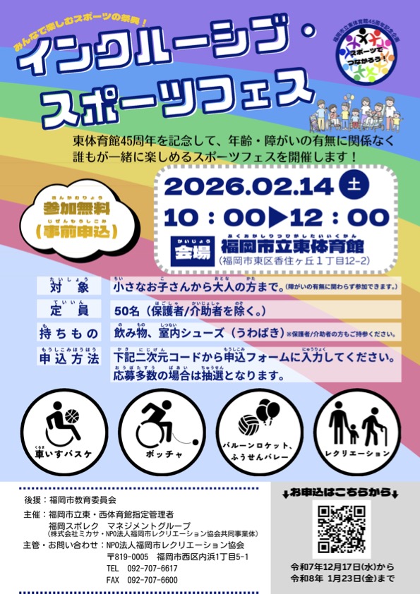福岡市立東体育館45周年を記念して、年齢・障がいの有無に関係なく誰もが一緒に楽しめる